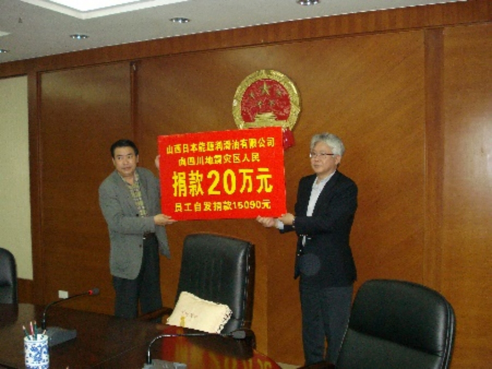 新日礦、日本能源、日礦金屬為四川省地震受災(zāi)者捐款1000萬日元。山西日本能源捐款20萬元,并為災(zāi)區(qū)免費(fèi)贈(zèng)油,員工也積極籌善款。